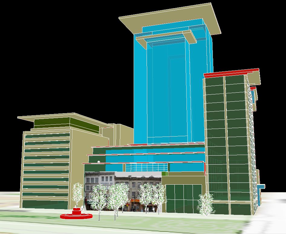 Local developer and designer Mahesh Butani has prepared a compromise development proposal for the Blanchard Block at Gore Park that would not only save the historic Gore Park buildings, but also integrate new development.